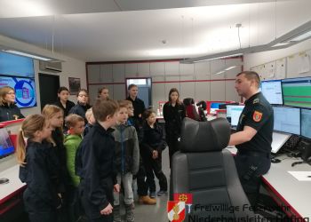 Zu einer besonderen Besichtigung machte sich die Feuerwehrjugend Niederhausleiten-Höfing samt Betreuern am Samstag auf den Weg zur Freiwilligen Feuerwehr Amstetten. Was geschieht bei einem Notruf?  Dies konnten die Feuerwehrjugendmitgliedern hautnah bei dem Bediensteten der Bereichsalarmzentrale Amstetten erfahren. Nach anschließendem Rundgang durch das Gebäude wurden sämtliche Feuerwehrfahrzeuge besichtigt.