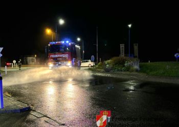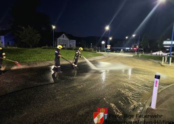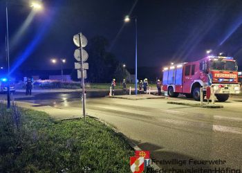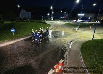 Am Freitagabend den 08. August wurde die Freiwillige Feuerwehr Niederhausleiten-Höfing zu einer technischen Hilfeleistung auf die B121 alarmiert. Ein Traktorgespann hatte im Kreisverkehr Ladegut verloren, wodurch die Fahrbahn stark verschmutzt war. Bereits beim Eintreffen der Feuerwehr wurde die Einsatzstelle durch die Polizei abgesichert. Für die Dauer der Reinigungsarbeiten wurde eine örtliche Umleitung eingerichtet, um den Verkehr aus dem Kreisverkehr herauszuführen. Anschließend wurde das Ladegut entfernt und die Fahrbahn gereinigt, sodass der Bereich wieder gefahrlos befahrbar war. Nach rund eineinhalb Stunden konnten die Einsatzkräfte wieder einrücken.