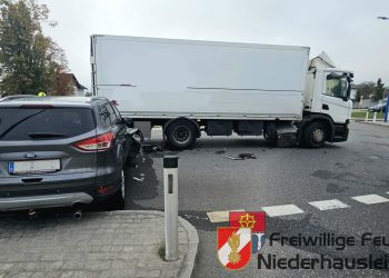 Ein PKW war aus bisher unbekannter Ursache mit einem LKW kollidiert. Glücklicherweise wurde bei dem Unfall niemand verletzt. Beim Eintreffen der Einsatzkräfte waren Polizei und Rettungsdienst bereits vor Ort.