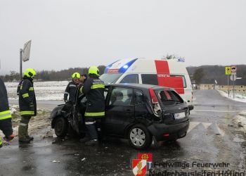Zu einem weiteren Einsatz wurde die FF Niederhausleiten-Höfing am 04.Jänner in der Mittagszeit mittels Sirene, Pager und SMS alarmiert. 2 Fahrzeuge kollidierten im Kreuzungsberich auf der L6210. Beim Eintreffen der Freiwilligen Feuerwehr Niederhausleiten-Höfing wurde die Unfallstelle bereits von der Polizei abgesichert sowie die verletzten Personen von den Einsatzkräften des Roten Kreuzes versorgt und in das Krankenhaus transportiert. Nach den Vermessungsarbeiten der Exekutive wurde das verunfallte Fahrzeug an einem gesicherten Abstellplatz transportiert und die Fahrbahn gereinigt. Nach ca 1 Stunde konnten die Einsatzkräfte der FF Niederhausleiten-Höfng wieder einrücken.