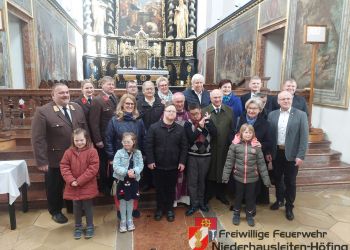 Bezirksfeuerwehrkommandant Rudolf Katzengruber, ASB Christian Kampner und Jugend-Bezirkssachbearbeiterin Carina Kampner waren am 3. März bei der Benefizmesse anlässlich des Welt-Down-Syndrom-Tages im Stift Seitenstetten geladen.